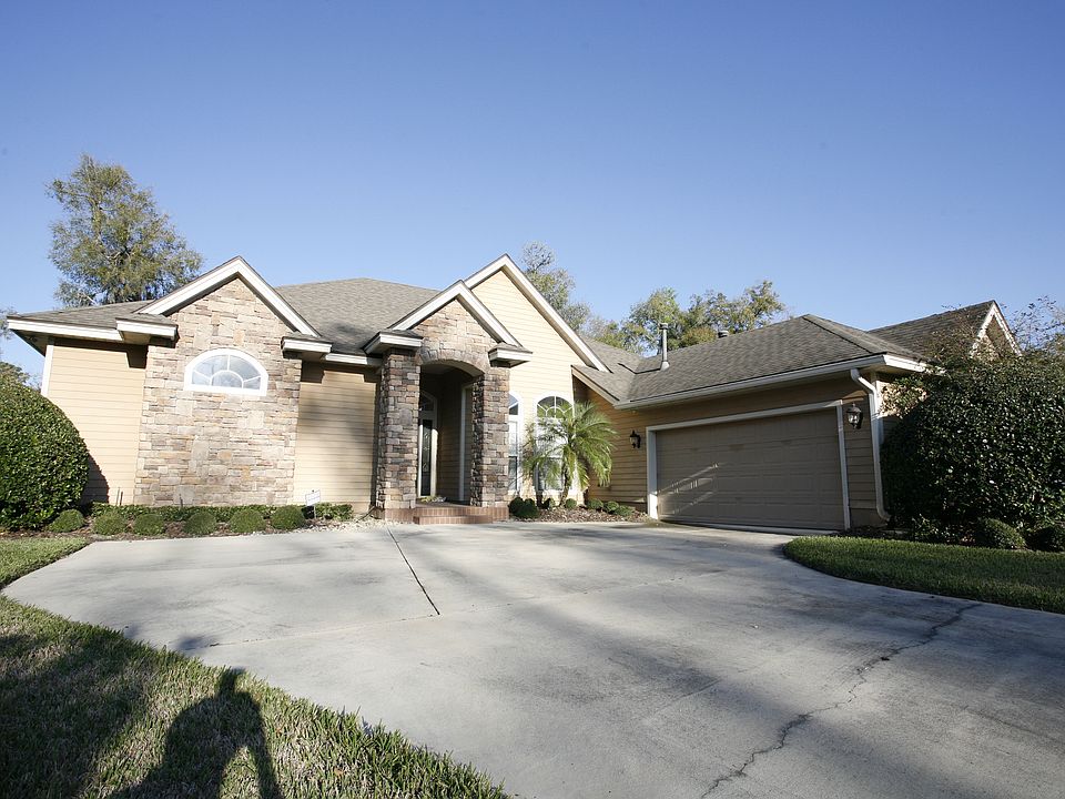 Beautiful 4/3, three-way split corner-lot home in Haile close to Publix shopping center and tennis courts. This luxurious home has coffered ceilings, rich wainscoting with wall frames and smooth crown molding add rich architectural interest. Traditional gourmet kitchen includes granite countertops, maple and white cabinets, custom tile backsplash and stainless appliances. Porcelain mixed tile and hardwood flooring in main living area, which includes a fire place. Neutral tones throughout create a sophisticated environment that is comfortable and inviting. Outside there is a covered lanai and fully fenced yard. Zoned for Chiles, Kanapaha and Buchholz schools.