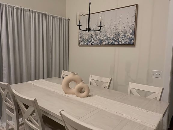 Beautiful and modern fully furnished 3-bed, 2-bath home with 1,500 sq ft of living space, built in 2024. This move-in-ready home features an open layout with stylish furnishings and updated finishes throughout. It includes a new refrigerator, microwave, washer, and dryer, along with all essential furniture for comfortable living. Enjoy a fully fenced backyard for privacy and outdoor activities. Parking is convenient with a 2-car garage plus 2 3 additional driveway spaces. Located in a quiet, peaceful neighborhood, the home is less than 1 mile from urgent care, fast food, and a gas station, with quick access to the highway for easy commuting. Highly rated schools are also nearby, making this an excellent choice for families. Perfect for anyone looking for a furnished, modern, and convenient place to call home.