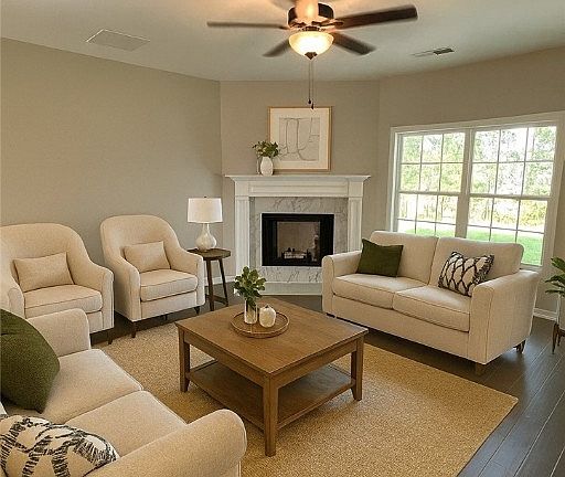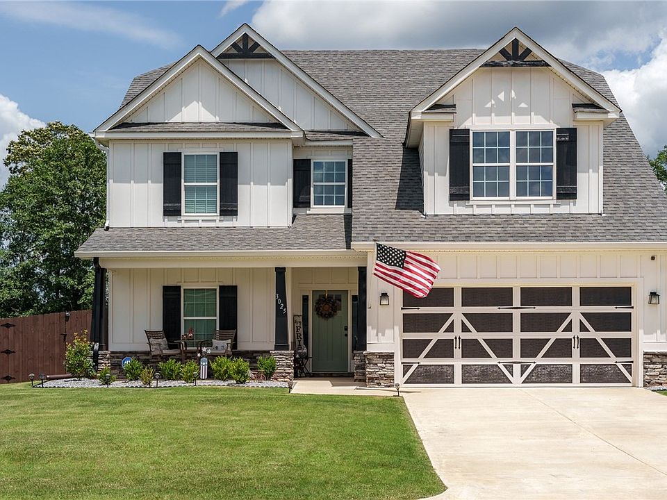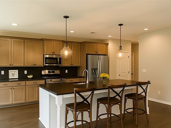 This home is better than new! From the moment you enter, you’re greeted by warmth, style, and an effortless sense of flow that defines this thoughtfully designed residence. The open-concept layout showcases a spacious great room anchored by a cozy gas fireplace, creating an inviting atmosphere for gatherings large and small. The chef-inspired kitchen steals the show with an abundance of stylish cabinetry, luxury granite countertops, a sleek tiled backsplash, and stainless-steel appliances, including a gas range. A large center island provides the perfect place for meal prep, casual dining, or connecting with guests while cooking. The kitchen seamlessly opens to the dining area and great room, making this space ideal for entertaining or relaxing with family. The owner’s suite on the main level is a serene retreat, featuring tray ceilings that add architectural interest and a sense of luxury. The spa-like owner’s bath offers a garden tub, tiled shower, expansive vanity, and a spacious walk-in closet designed for organization and ease. Just off the owner’s entry, the signature drop-zone serves as a convenient family catch-all, perfect for bags, shoes, and everyday essentials. A main-level laundry room adds even more functionality, keeping convenience at the heart of the home. Upstairs, discover a large media room, ideal for use as a second living space, home theater, or playroom. The additional bedrooms are generously sized, each offering ample closet space and plenty of natural light. Throughout the main level, hardwood flooring adds timeless elegance and durability, while thoughtful upgrades and included features showcase quality craftsmanship at every turn. Step outside to your Game Day Patio, complete with a cozy outdoor fireplace—the perfect place to relax, host friends, or cheer on your favorite team during crisp fall evenings. This home combines comfort, beauty, and functionality—every detail designed to make life both easy and enjoyable.