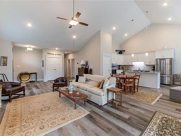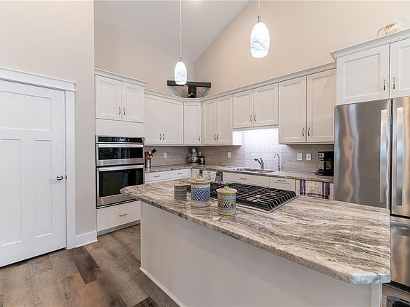 Beautiful bathroomVaulted great roomResort style primary bedroomCozy front porchLots of windowsNatural lightDouble ovens