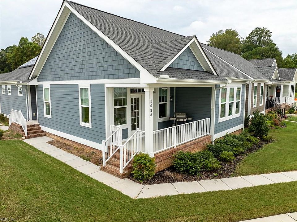 Discover refined comfort in this beautifully crafted, intelligently designed rancher featuring effortless one-level living. Here, your lifestyle goes to the next level. Don't miss the vaulted great room with lots of windows, just the right amount of natural light. The gourmet kitchen acts as the centerpiece of this space with an expansive granite island, double ovens, gas cooktop with downdraft exhaust, custom tile backsplash & sleek stainless steel appliances. Get away to your resort style primary bedroom which includes a beautiful bathroom with its dual shower heads with full glass, & dual vanities! Energy efficiency is provided by Solar Panels, 6" insulated walls & the HVAC system utilizes a recirculating heat system so no matter the season, you are covered. Outside enjoy your cozy front porch with guests. Parking is a breeze: 2 car garage & off street parking for 3 more vehicles, 2-3 more in the front means everyone has a space. Enjoy close proximity to everything Williamsburg!