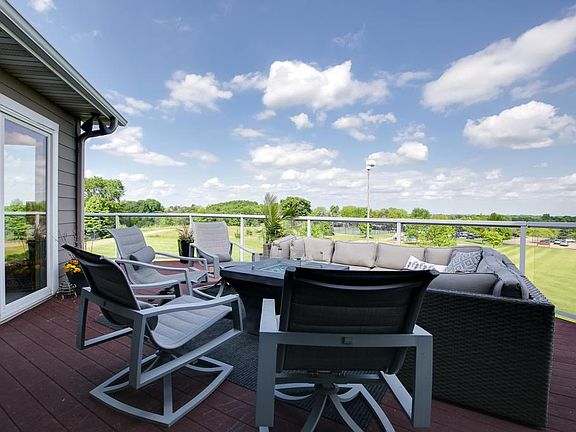 Amazing rambler at the Chaska Town Course, soaring vaults and large windows to take in the views, gourmet kitchen with commercial grade appliances, eat-in kitchen, main floor master with remodeled bathroom, office/bedroom, 4 season sunroom, dining room. Just off the 18th hole in a low traffic Cul de sac. Views of Lake Bavaria and Golf Course.