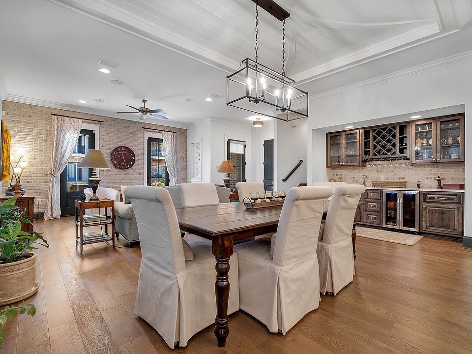 Welcome to this stunning Like New home, filled with natural light and brimming with timeless charm. Located just a short stroll from Bannerman Commons, this home offers the perfect blend of convenience and luxury, with shops, restaurants and entertainment right at your doorstep. The thoughtfully designed interior features upgraded finishes, highlighted by a sleek wet bar that takes center stage for entertaining. The kitchen, anchored by an oversized island and quartz countertops, is equally impressive providing plenty of space for casual meals and culinary creations. On the main floor, a large bonus room or 4th bedroom offers flexibility to suit your lifestyle, whether you need a home office, gym or guest space. The welcoming front porch and striking New Orleans style balcony add a touch of Southern elegance, perfect for enjoying your morning coffee or an evening sunset. At the back a private courtyard awaits, complete with a built-in fire pit, arbor and a charming brick patio- your personal retreat for relaxation or hosting outdoor gatherings. The rear- entry garage with upgraded flooring ties it all together with convenience and style. This home truly offers a rare blend of location, luxury and charm. Don't miss your opportunity to tour this home today!