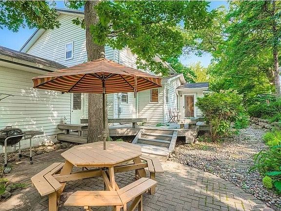 The backyard is a private oasis, featuring a paver patio surrounded by lush landscapingperfect for relaxing or entertaining.