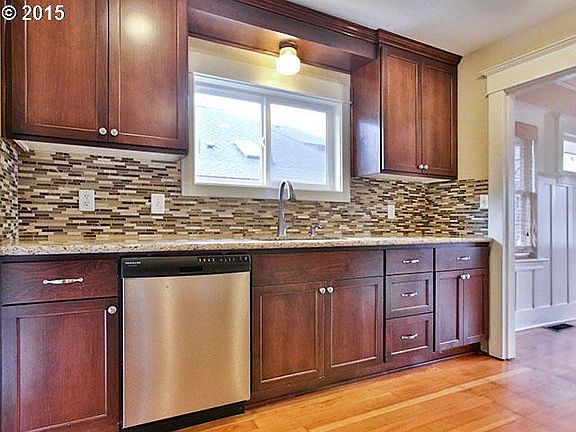 Updated craftsman in desirable Rose City Park neighborhood. Remodeled kitchen and bathrooms. Period features still intact including wainscoting, box beam ceilings and large picture windows. Two bedrooms on the main floor with third bedroom in the basement may be non-conforming. Bonus room in the attic is great for playroom or storage. Home is conveniently situated a short walk to great shops, restaurants and public transportation.
