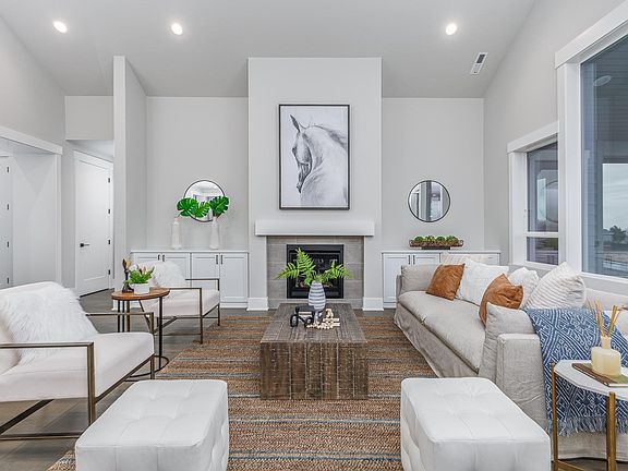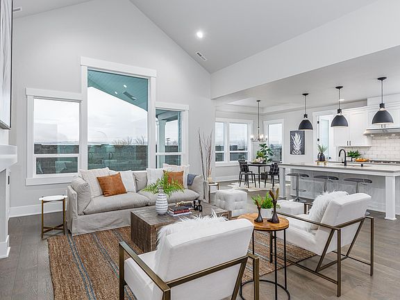 PURCHASE NOW to select your finishes! This Carrington plan by Award winning Pahlisch Homes is being offered in the popular River's Edge community on lot 94, and scheduled to start in November. Wake up to a beautiful sunrise & have front row seat for the 4th of July Fireworks. This stunning residence offers the perfect blend of elegance & functionality, nestled amidst a community of single-level homes, & the allure of a nearby golf course & hiking trails. As you enter, you are greeted by a grand & inviting entry that leads to a high vaulted ceiling, creating an open & airy ambiance. The gourmet kitchen is a chef's delight, featuring a large island & a walk-in pantry, providing ample storage & a seamless cooking experience. The primary suite showcases a spacious bedroom separation ensuring tranquility & relaxation. For car enthusiasts or those needing extra storage, the three-car garage offers ample space for vehicles & belongings. Photos show similar home. $5K using preferred lender