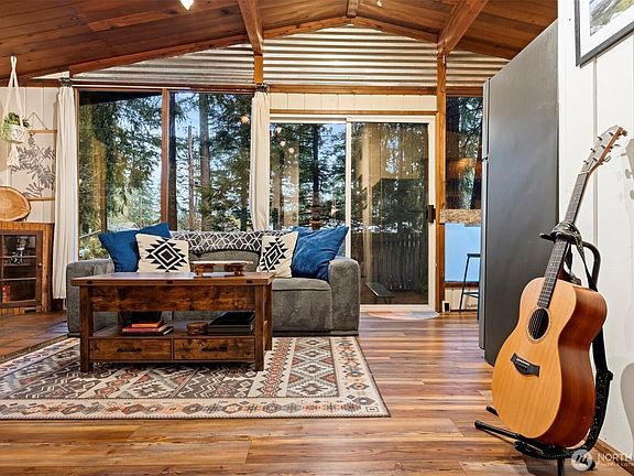 The perfect, cozy home just in time for the holidays! This home lives larger than it's square footage and checks all the boxes for your PNW retreat - wood burning fireplace, beautiful, wood tongue and groove vaulted ceiling, tons of natural light, great outdoor living space, and the list goes on. Open floorplan and private, large yard offer easy and versatile living. Fantastic updates provide peace of mind including new hot water heater, updated carport, updated plumbing, and clean crawlspace. Enjoy all that Glenhaven has to offer: 2 lakes, boat launch, pool, athletic courts, clubhouse, and more. Purchase as your primary residence, short-term rental, or second home - the possibilities are endless! Can be sold partially furnished.