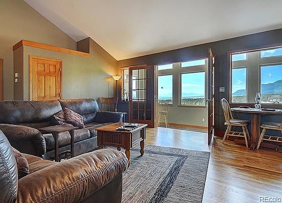 Look no further! This property is the epitome of blending country life and just minutes from town amenities. This home has 2200 square feet with 3 bedrooms and 3 baths, open floor plan with vaulted ceiling. Bright sun-room with fantastic views of the Collegiate and Sangre De Cristo mountains. Home has abundant storage, hardwood floors, spacious counter tops, large master bedroom with 5 piece ensuite. The oversized 2 car garage has a large work bench with great storage and RV parking pad. Natural landscape, 3.35 acres with newly planted trees, fenced back area for pets, storage and small garden. Near National Forest, hot springs, fishing, rafting and all outdoor activities.