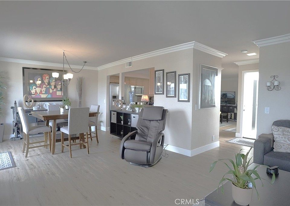 which is only 4 miles from the beach. It is located on the corner of the best street in the tract, with a water fountain and greenbelt area. Enter through a small, gated patio area, and move with ease throughout the open floor plan from the dining area, large living room, and kitchen with access to both the dining area and living room. Brick gas fireplace, and sliders to the nice-sized patio, so you can watch the Sunrise!! from a Huge Patio, beautiful mountain views, and more. It backs to Greenbelt and an open field, so nobody is behind you. Direct access to a two-car garage with an Epoxy floor. Upstairs, the oversized master bedroom is a sanctuary with its large sitting area, full bathroom, and small balcony with beautiful views. You’ll also find two additional bedrooms, a full bathroom, and a laundry room. HOA amenities include a pool. Walking distance to local restaurants, shops, library, and the proximity to beautiful beaches, award-winning schools, public transportation, and no Mello Roos makes this a highly sought-after place to call Home!