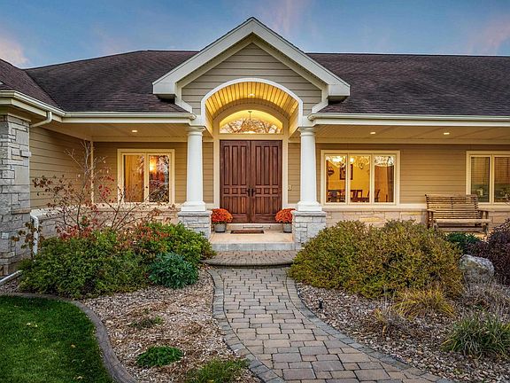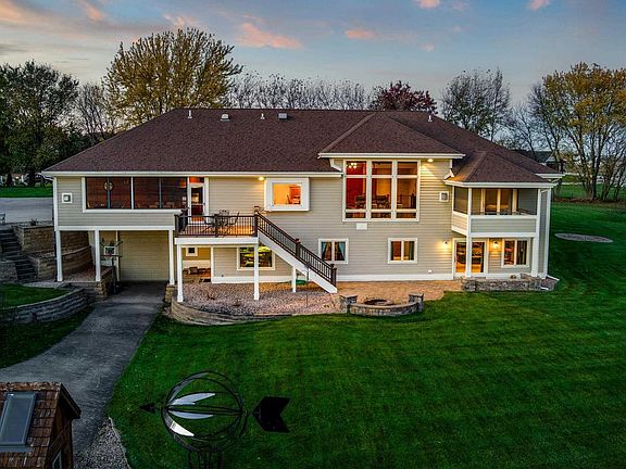 This beautiful custom-built home is tucked away in a quiet neighborhood w/ no HOA, offering privacy & incredible views from nearly every room. It features Marvin doors & windows, Simpson wood exterior doors, & rich stained birch cabinetry & trim. The kitchen showcases a Brazilian cherry island, granite surfaces, & a built-in dinette. Enjoy 2 fireplaces?1 in the living room & 1 in the cedar 3-season porch w/ kitchenette. Dual-zoned HVAC. The primary suite offers a custom closet, spa-like travertine bath, jetted tub, and private screened porch. LL highlights includes a home theater, mahogany bar, exercise/safe room, and 2nd garage. Outside are 2 composite decks, paver patio, firepit, heated 40x80 workshop + 4-car main & 4-car lower garages.