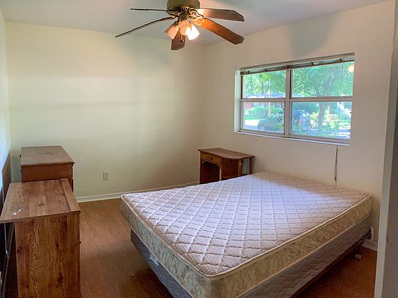 Available Fall 2023, this 3-bed, 2-bath home is located in Black Acres - walking distance to UF Campus & the Law School! This charming concrete-block home features Pergo floors throughout the living area and bedrooms and ceramic tile in the bathrooms, a fully-equipped kitchen with a newer refrigerator, a brick fireplace, an indoor utility room with newer washer/dryer included (not pictured), a one-car garage, and a large fenced backyard with wood deck. Schedule a showing today! *Note: house is unfurnished & these photos are prior to current tenants taking occupancy.