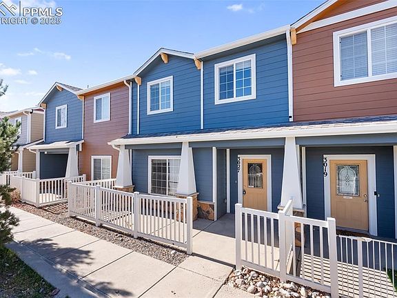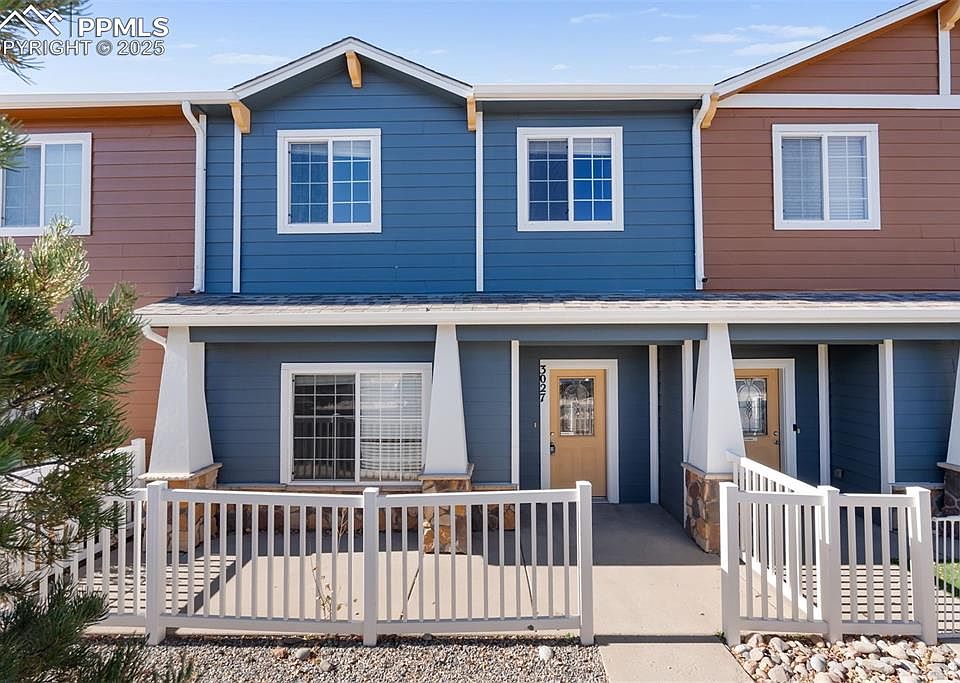 Welcome to this charming 3-bedroom, 3-bath townhouse in the Soaring Eagles neighborhood, offering a wonderfully functional layout and plenty of opportunity to make it your own. A cute, quaint front patio greets you at arrival—perfect for enjoying sunny mornings or adding your favorite plants and cozy outdoor seating. Step inside to an inviting main level filled with natural light and brand-new carpet throughout. The open-concept living area flows seamlessly into a spacious kitchen featuring abundant cabinetry, generous counter space, a handy prep island, and a comfortable dine-in area. A convenient half bath completes the main level. Upstairs, the nicely sized primary suite includes an ensuite bathroom and a huge walk-in closet. You’ll also find two additional guest bedrooms, a full bathroom, and a dedicated laundry room—offering practicality and comfort for everyday living. The attached 2-car garage provides secure parking and extra storage. Located near schools, parks, shopping, and easy access to Powers & Academy Blvd, and nearby military bases, this home delivers both convenience and value. Thoughtfully maintained and filled with potential, this townhouse is a great space to settle into, personalize, and truly make your own