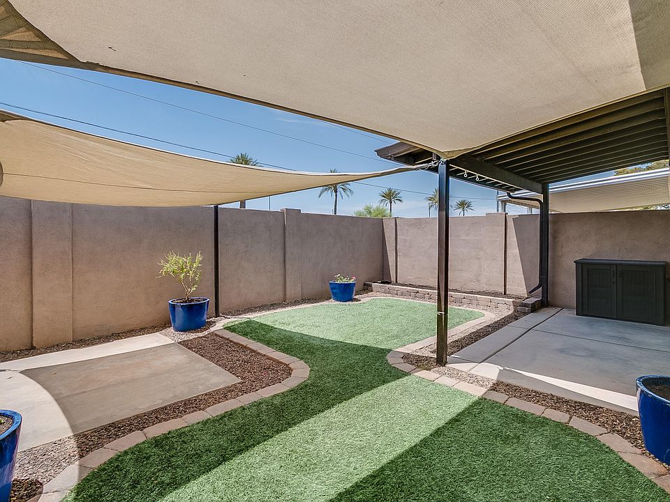 Still Looking for an Affordable Clean Move-In Ready Home in a Gated Community with RARE RV/Boat/Trailer Space for $25 a month. This Single Level updated Light Bright & Airy Home features 3 Skylights, Newer Dual Pane Windows & Sliders. Keep Cool--New Air Conditioner, Fans thru-out, Plus 3 Professional Grade Sun Shades. Bedrooms have New Carpet, Custom Closets. Bathroom Updated New Vanity & Flooring. Granite Countertops & Hickory Cabinets featured in Kitchen. Outdoor Living in Front Courtyard w/Stack Stone Built-in BULL BBQ Grill, & String Lights. Attached Double Carport & Outdoor Storage. Easy Care Backyard has Artificial Turf, Seating Area, Pre-Plumbed for Spa, & Sun Shades. Bonus--Whole House Aquasana Filtration System, Newer Hot Water Heater, & Re-Coated Roof. Bring your Toys too