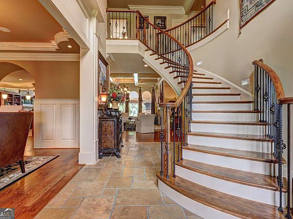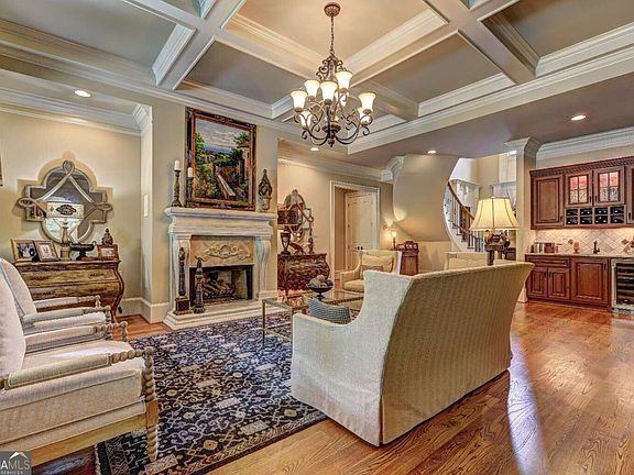 Welcome to Luxury Living in the Heart of Milton! Located in the prestigious, guard-gated Manor Golf & Country Club, this custom-built estate offers over ~9,000 sq ft of heated/cooled living space on a beautifully terraced 1.19-acre corner lot with views of the Tom Watson Championship Golf Course. This 6-bed, 7 full bath & 2 1/2 bath home is designed for entertaining and comfort, featuring 10-ft ceilings, custom crown molding, floating staircase, and abundant natural light throughout. The expansive main level includes a gourmet kitchen (imagine a different kitchen feel via the virtual staging photos) with Wolf & Sub-Zero appliances, oversized island, double sinks, pot filler, warming drawer, and dual Asko dishwashers. Enjoy an adjacent walk-in pantry with rolling ladder, command center desk, and mudroom with 2nd laundry. The open floor plan flows into a stunning keeping room with vaulted ceiling, Palladian window, and stone fireplace. A formal dining room and wet bar with wine cooler make entertaining easy. The guest suite on main includes a large ensuite bath and tray ceiling. Step outside to a resort-style backyard with covered patio, outdoor kitchen (Viking grill, side burner, fridge), wood-burning fireplace, pool with hot tub & sun ledge, firepit, and lush seating areas. Professionally landscaped by Cartwright Landscapes, the backyard also features 350+ linear ft of custom stone walls. Upstairs, the primary suite features a triple tray ceiling, fireplace, spa bath with double showers, rain head, large bench, and a custom dressing room with 8' vanity. A breezeway leads to the private executive office suite above garage bays 4 & 5, with vaulted ceiling and private access for early departures or late returns. Three additional upstairs suites offer walk-in closets and private baths, plus a large bonus room with built-in desks, storage, and tech space. Main laundry is also upstairs. The finished terrace level includes a full kitchen with large island, full fridge/freezer, icemaker, microwave, range, and dishwasher. Enjoy a large den, game area, media room (10 seats, 86" Sony TV), gym with rubber flooring and steam shower, private bedroom with full bath, and workshop/craft area. Tech closet is fully wired for smart home integration, with network, audio, video, and coax pre-wired throughout. 5 garage bays, circular drive, and extended parking behind the portal garage make hosting easy. Community amenities include: 24-hour security, clubhouse, fitness center, restaurant, indoor/outdoor pools & tennis (hardcourt & clay), sidewalks, and world-class golf. Close to top-rated schools, Hwy 400, and shopping/dining in Milton, Alpharetta, Halcyon, and Avalon.