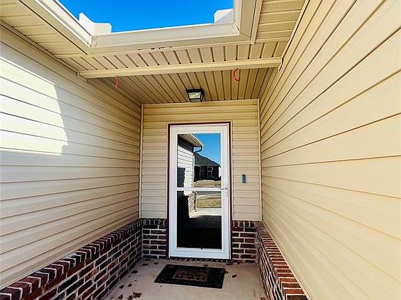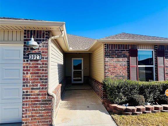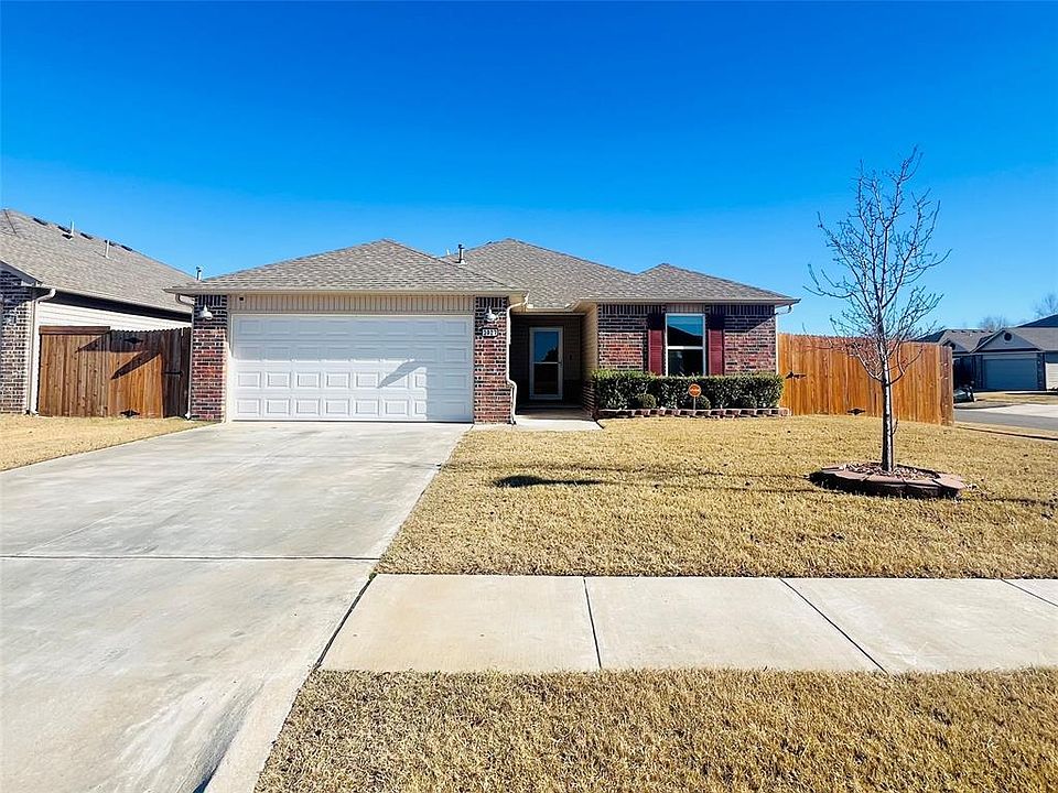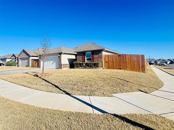 This spotless 3 bedroom, 2 full bathroom located on a corner lot in the desirable Shadow Valley neighborhood is waiting for you! As you walk in you will be greeted by a big, open living room with 10 foot ceilings that flows effortlessly into the dining room and kitchen area. Off the dining room is the spacious primary bedroom with an en-suite bathroom featuring a walk-in shower and a MASSIVE his and her walk-in closet. Also off the dining room is the back covered patio with a great yard surrounded by a privacy fence. The privacy fence has the convenience of a double gate for easy access in and out of the yard. It's hard to find such a spacious yard like this one in this neighborhood! In addition, there is an above ground storm shelter located in the garage - a great amenity that gives you peace of mind during Oklahoma weather. This property was built in 2020 with one owner and it's been very well taken care of. Alarm system will stay with property. Schedule a private showing today!