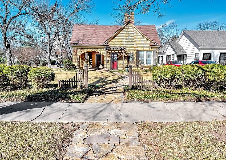 Exuding storybook charm, this cottage-style home is the perfect combination of quaint personality and abundant living space. The main house boasts over 1,700 square feet of living space, three bedrooms, and two full baths. Yet, you also get a spacious 800 square feet in the guest quarters. So, you've got room for the whole family, and possibly the mom-in-law, good friend, or tenant as well. This house is automatically charming with its steeply pitched roof, arched architectural details, and sizable corner lot. However, you feel downright cozy upon entry when you see the recently updated interior. The house is outfitted with original hardwood flooring, tons of crown molding, and fireplace to keep you warm, as well as inviting color tones throughout. The classic kitchen serves up a collaboration of old charm and new innovation with plenty of cabinet space, open upper cabinets, loads of counter surface, and a sleek color scheme. The massive formal dining room is filled with natural light, and you even get a den that would work great as a private office or study. Not only are the bedrooms sizable in this home, but both integrated full bathrooms also have all the trappings of modern design. Each is outfitted with tile flooring and shower or tub surround, as well as glass shower doors and storage. Outside, you'll find so many reasons to feel at home. The backyard is enclosed with privacy fencing, the pergola-topped back deck is just what you need for entertaining, and the manicured landscaping even offers a built-in fire pit. From the front of the lot to the back, mature trees keep the property shaded from the Waco sun. On the backside of the property, a spacious three-car garage yields lots of parking space, but the real hard-to-find gem is the full one-bedroom apartment above the garage. This additional living space is completely separate from the main house, which means both properties get all the privacy they need. The apartment has a living room, a huge eat-in kitchen with space for a full-size dining table, and a full bathroom. Recent updates in the guest apartment include central heating and cooling and a new hot water heater. Centrally located between Lake Waco, shopping, and Cameron Park, this home on Windsor Avenue is in a prime location, so it won't last long. Find your way home today where the cozy fireplace, a backyard haven, and a convenient guest house await!