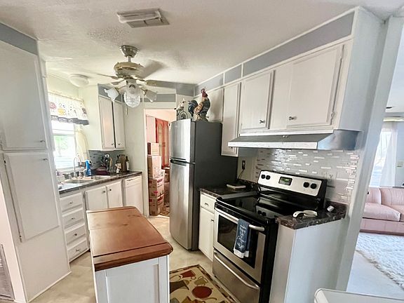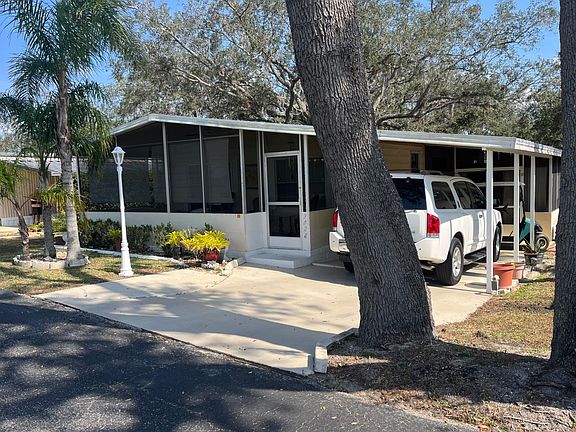 INCREDIBLE REDUCTION INCLUDES THE GOLF CART! Discover your perfect 55+ retreat in the premier Oakridge community of Sebring, Florida! This beautifully maintained 1981 double-wide offers two spacious bedrooms and two pristine baths, thoughtfully designed for comfortable living. Step into a generous living room that flows seamlessly onto a screened front lanai, where you can unwind while enjoying picturesque sunsets over the orange grove-no front neighbors to interrupt your view. The separate dining area, complete with a built-in China cabinet and buffet, invites elegant gatherings, while the upgraded kitchen boasts new countertops, a stainless steel stove, and refrigerator, perfect for culinary adventures. The expansive primary bedroom features a large walk-in closet and a private en suite with a walk-in shower, while the guest bedroom offers built-in cabinetry and ample closet space, served by a stylish tub-shower combo bathroom. Enjoy the convenience of a second screened lanai and an attached storage shed ideal for seasonal decorations, bicycles, or golf clubs. With modern upgrades including a five-year-old central air conditioning system, new comfort-height toilet, duct cleaning, and upgraded light fixtures and ceiling fans, this home combines timeless charm with contemporary comforts. Embrace a lifestyle of relaxation and convenience in this inviting Oakridge gem! Monthly lot rent is only $839 and includes water, sewer, trash, and lawn mowing! Not yet 55? No problem! Patti will assist with park approval for qualified 45+ individuals or couples. Call today to schedule a tour! *All listing information is deemed reliable but not guaranteed and should be independently verified through personal inspection by appropriate professionals. Listing company cannot guarantee or warrant the accuracy of this information or condition of the property. The buyer assumes full responsibility for obtaining all current rates of lot rent, fees, and pass-on costs. Additionally, the buyer is responsible for obtaining all rules, regulations, pet policies, etc., associated with the community, park, or home from the park manager.