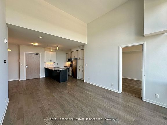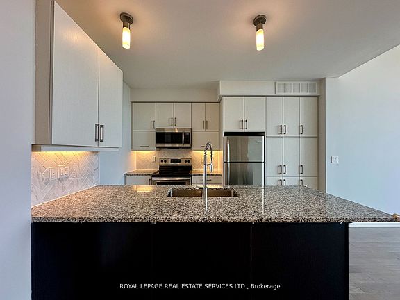 Stylish and sun-filled 2-bedroom penthouse with soaring 14-foot ceilings, offering panoramic views from the large balcony. Upgraded open kitchen features quartz countertops, stainless steel appliances, and a breakfast bar that combines function and flair. The den provides a flexible space for a home office or dining space. The primary bedroom boasts a 4-piece ensuite and walk-in closet, and the second bedroom is located next to a full bathroom. Luxury finishes throughout. Amenities Including gym, rooftop terrace with Bbq, party room, and visitor parking. Located close to 403/407/QEW, Trafalgar Memorial Hospital, parks, shops & restaurants.