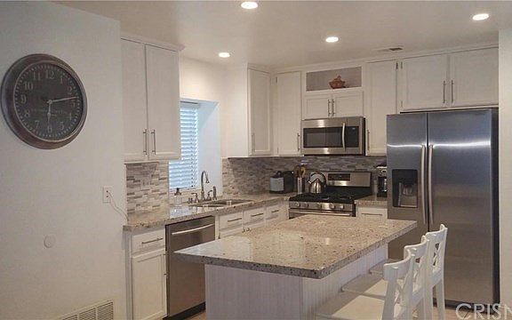 Move in ready 4 Bedroom 2 Bath SINGLE STORY home ! This homes interiors have been remodeled to include a new kitchen with updated appliances, refinished cabinetry, solid surface countertop's & a BIG center island with a custom tiled back splash ! The soaring vaulted ceiling's combined with the generous natural lighting illuminate the interior space. The interior Paint is neutral and clean. Shows pride of ownership throughout.