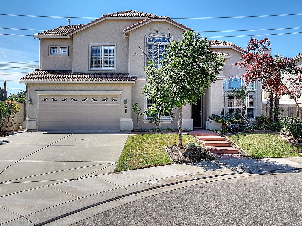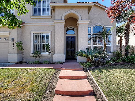 This gorgeous home features new carpet throughout, and fresh 2 tone paint. Backyard oasis with inground pool & spa, featuring sheer descent waterfalls and patio with gas hookup for BBQ. The home features large formal living & dining room combo off the entryway with high vaulted ceilings, separate family room with built-in entertainment niche plus a gas fireplace. The kitchen features granite tile countertops and gas range. Downstairs master suite with private bath, plus 1 bedroom & full bath downstairs. Upstairs features a large media room and 3 bedrooms. Close to shopping, schools, parks and more.
