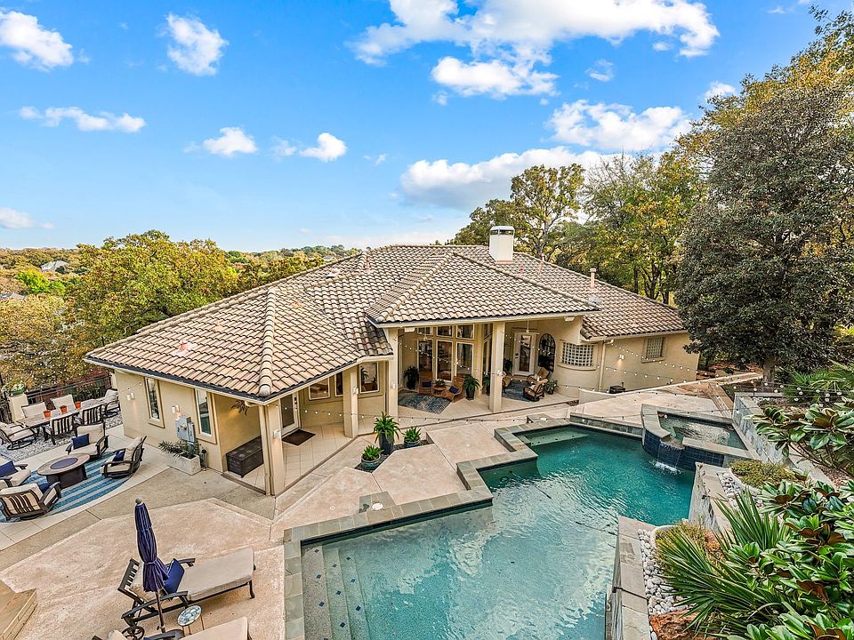 Perched atop a scenic hillside, this updated stunning residence by Bailey Draper captures sweeping views and timeless elegance. This property is one of a kind! Set on over half an acre, this unique modern home blends sophistication with comfort—perfect for both everyday living and grand entertaining. Step through the impressive entryway onto beautiful hardwood floors that flow throughout the open-concept main level. Expansive terraces and soaring ceilings fill the home with natural light, creating a bright, inviting atmosphere. The formal study and dining room each offer terrace access, ideal for indoor-outdoor gatherings. The gourmet kitchen is a chef’s dream, featuring a built-in refrigerator, gas cooktop, stainless steel appliances, quartz countertops, and a spacious island. The private primary suite offers its own balcony access and a see-through fireplace leading into a spa-inspired bath with a jetted tub and glass shower. Entertainment spaces abound—including a game room, media room, and convenient kitchenette—all accessible by elevator. Generously sized secondary bedrooms provide comfort and privacy for family and guests alike. The 5th bedroom is currently being used as a Fitness Room. Outside, the covered patio overlooks a sparkling pool and attached spa, with an outdoor fireplace creating the perfect setting for year-round relaxation and entertaining. Located in award-winning Grapevine-Colleyville ISD, this exceptional home combines luxury, function, and unforgettable views in one extraordinary package. Conveniently situated between Dallas and Fort Worth, as well as excellent access to the Dallas Fort Worth International Airport. Within minutes of Historic Downtown Grapevine and Southlake Town Square offering endless dining and shopping options!