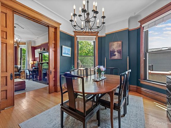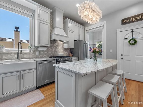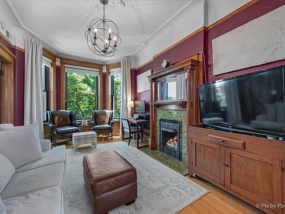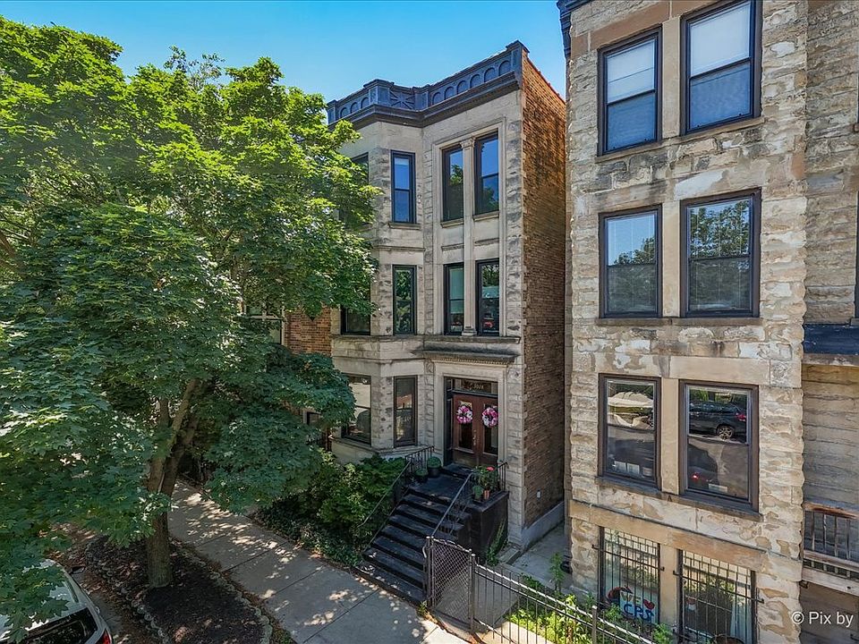 Beautiful top-floor greystone in a prime Lakeview location-where timeless charm meets thoughtful modern updates. This sun-filled 2-bedroom, 1-bath home blends vintage character with recent renovations, all set on a quiet, tree-lined one-way street just moments from the Wellington Brown/Purple Line, shops, and restaurants. The remodeled kitchen features 42" custom white cabinetry, marble countertops, a large island, and newer stainless steel appliances including a 5-burner stove, pyramid-style range hood, and under-counter wine and beverage fridge. The kitchen flows seamlessly into the integrated family room, creating a true gathering space ideal for entertaining. The bathroom was fully updated in 2019 and offers a marble vanity, modern tile, accent niche, and a deep soaking tub with spa-style showerhead. The master bedroom includes a walk-in closet with built-in organizers, picture frame molding, and a perfect balance of elegance and practicality. The second bedroom offers generous closet space, while the sunroom off the kitchen provides a bonus flex space-great for a second lounge, office, or reading nook. The home features gorgeous original woodwork throughout, including a built-in hutch, 9-foot tall pocket doors, glass transoms, crown molding, and 11-foot coved ceilings with intricate medallions. Natural light floods in from east, south, and west-facing windows, thanks to the top-floor position and only a 2-story building next door. All windows were replaced in 2024, adding comfort and energy efficiency. Additional features include newer light fixtures throughout, new furnace (2016), and roof resurfacing and tuckpointing (2023). Free laundry in the basement (with internal stair access) includes two washers and two dryers, one of each brand new in 2024 and 2025. Two large private storage spaces are included. A shared outdoor green space behind the building offers a serene spot for grilling or relaxing, complete with table and chairs. Located just a short stroll from Wrigley (yet far enough to avoid game-day crowds), Southport Corridor, Lake Michigan, and Wiggly Field Dog Park. You're steps from beloved local spots like Panes Bread Cafe, DMK Burger Bar, Fish Bar, Osmium Coffee, and Vaughan's Pub-plus quick convenience at South Loop Market just 1.5 blocks away. This rare Lakeview gem combines classic craftsmanship with updated functionality, unmatched light, and a layout that lives large. Don't miss your chance to own a true top-floor treasure.