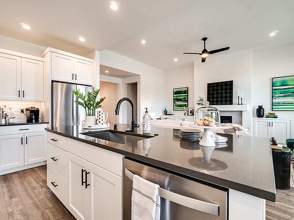 - Smart Lock(s), Breakfast Bar, Ceiling Fan(s), Double Vanity, Enclosed Toilet(s), Kitchen Island, Linen Closet, Open Floorplan, Pantry, Primary Downstairs, Smart Thermostat, Solid Surface Counters, Tile Shower, Vaulted Ceiling(s), Walk-In Closet(s)