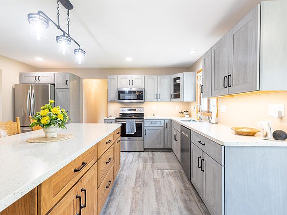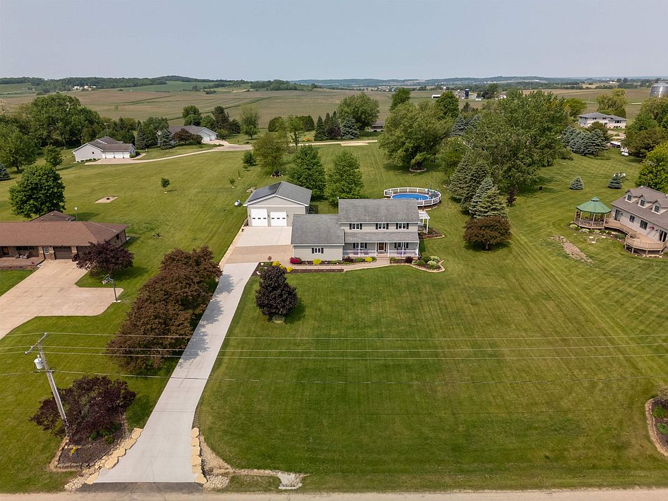 Welcome home to this immaculately maintained 4-bedroom, 3.5-bath property that offers over 3,000 square feet of finished living space and an incredible outbuilding perfect for all your hobbies and storage needs. Inside, you'll find a formal dining room, formal living room, and a fully renovated, spacious eat-in kitchen complete with an island and bar seating that opens to a comfortable family room—ideal for everyday living and entertaining. Upstairs, the large primary suite features a vaulted ceiling, electric fireplace, walk-in closet, and private en-suite bath. Three additional bedrooms and another full bath complete the upper level. The finished basement offers a theater room area and a versatile flex space currently used as a large office. The oversized 2 car attached garage includes a wide staircase leading directly to the basement for added functionality. Built in 2016, the fully heated outbuilding is a standout feature with two large overhead doors (10x10 and 10x12) perfectly suited for a camper, boat, car lift, or workshop. It also includes a heated and cooled man cave or she-shed area, plus loft storage for even more space. Recent updates include new siding in 2017, a new furnace and AC in 2020, a new hot water heater in 2020, a new well pressure tank in 2019, a maintenance-free back deck added in 2019, and new garage doors and openers in 2019. The outdoor living space is complete with an above-ground pool and hot tub added in 2022, along with a brand-new putting green installed in 2025. Move-in ready with space for everyone—and everything—you love.