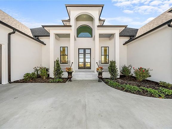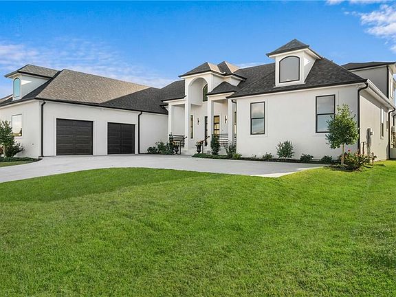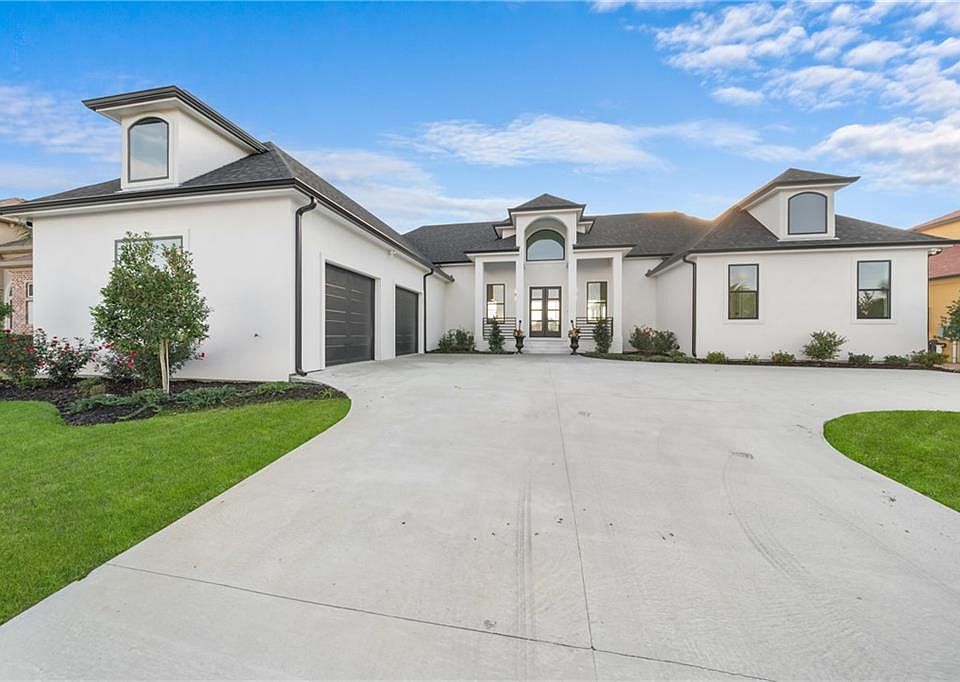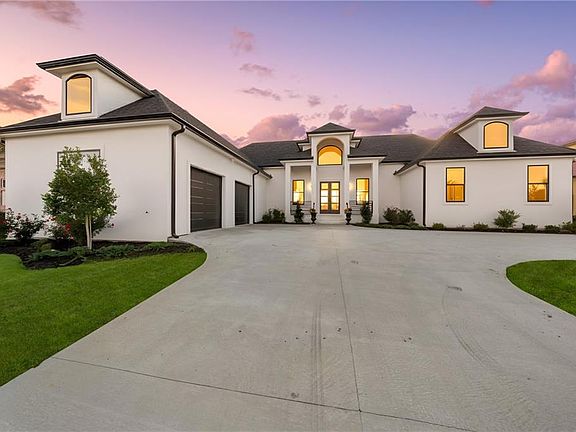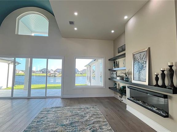 Step into elegance with this stunning new construction in the waterfront gated and guarded Lakeshore Estates. Designed for luxury and convenience, this home welcomes you with soaring 18-foot barrel ceilings and an open-concept layout that puts your dream kitchen and living space front and center. A chef's delight, the kitchen features a sleek design, a six-burner gas range and breathtaking Taj Mahal quartz countertops - perfect for cooking and entertaining at your home. The private primary suite is a sanctuary, offering a spacious marble shower, dual vanities, and an exquisite round soaking tub. A custom walk-in dressing room connects seamlessly to the laundry room for ultimate convenience. Enjoy superior custom lighting throughout, no carpet anywhere, and a versatile upstairs retreat - ideal as a bedroom or game room. A separate downstairs office and private en suite with its own entrance provide flexible living options to suit your lifestyle. This exceptional home is a true masterpiece in modern living