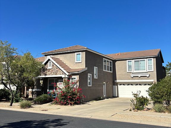 Charming 3-bedroom, 2.5-bath home in the sought-after Tramonto community, offering scenic parks, walking paths, and inviting community pools. This well-maintained property features desert landscaping, a 2-car garage, 9-ft ceilings on the main level, tile flooring, and carpeted bedrooms. The open layout includes a spacious great room, dining area, and versatile loft. The kitchen offers staggered cabinetry, tile countertops, stainless steel appliances, and a center island. The primary suite includes double sinks, an extended vanity, and a walk-in closet. Enjoy the backyard with a covered patio, low-maintenance turf, and a blooming flower bed—perfect for relaxing or entertaining.
