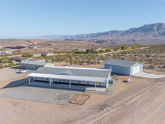 Immaculate and move-in ready this beautiful 2,358 square ft home, built in 2020, has 4 bedrooms and 2 baths. All furnishings are included. The home features tall ceilings with crown molding, an open kitchen with a stainless-steel farmhouse sink, extra tall cabinets, quartz countertops, a large walk-in pantry, and a kitchen island along with a large farmhouse style dining table providing ample seating for up to fifteen people. The primary bedroom includes an exquisite en-suite bath with a walk-in shower, dual sinks, and an extra large walk-in closet. On a corner 0.64-acre lot with dual street access and a 36x40 drive-through garage, this property boasts gorgeous views of the Grand Wash Cliffs. Access to the Meadview Civic Center provides swimming, tennis, bbqs, miniature golf and so much more.
