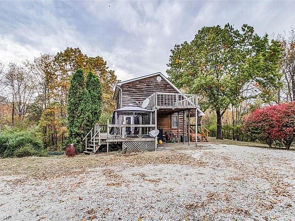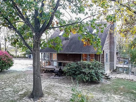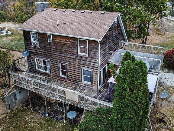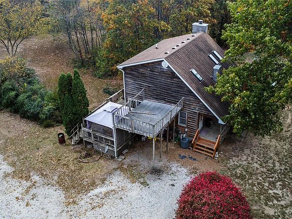 Country charmer on 5.52 acres near golfing and lake fishing! Cozy cedar sided story and a half, two bedroom home with walk out basement. Mixture of woods and grassland, with a small pond in need of dredging located behind the home. This property has a lot to offer! On the main level is the kitchen to living room with fireplace and open to dining area, around the corner is a setting room or home office(piano stays). Upstairs you'll find two bedrooms divided by the full bath. Down stairs is a family room, a half bath that adjoins a 7x6 laundry that could be a larger bath, and huge storage with another laundry area. Currently on well water, with a meter in place at East side of driveway. 2 Camper hook-ups. Two water haulers will be included. Refrigerator and stove (2 years old are negotiable). A/C was rebuilt 2024. Chain link fence, 2 small sheds to be removed prior to closing. This home needs TLC and is being sold in the current condition to conventional loan or cash buyers. Suitable for Bed/Brk