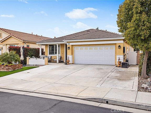 Beautiful, move-in ready home in the 55+ gated community of Orchid at Pacific Menifee. This single-story home on an interior cul-de-sac street features 2 bedrooms, a den/office, and 2 full bathrooms. The remodeled front yard includes an expanded porch area, an enlarged driveway for 3 vehicles, a raised brick planter, artificial turf, stone pavers, and electrical outlets under the eaves for convenient outdoor lighting use. Inside you’ll love the high ceilings, window shutters, quartz countertops, ceiling fans, and engineered hardwood floors throughout with carpet reserved for both bedrooms. At the heart of this home is a chef’s delight kitchen. Featuring stainless steel appliances, loads of cabinet and counter space, endless quartz countertops, and a massive kitchen island with breakfast bar seating. This kitchen flows seamlessly into the dining area and a large family room for an open concept feel. A gas fireplace and custom media built-in anchor this space well. The primary suite includes a walk-in shower, soaker tub, dual sink vanity, and a spacious walk-in closet. The secondary bedroom includes mirrored closet doors and plenty of space. An inside laundry room with sink and additional storage, plus a whole house water softener system is also nice. In the rear yard you’ll find the perfect blend of stamped concrete, lush green grass, low maintenance plants, and a full-length aluminum patio cover providing shelter as you enjoy this tranquil retreat. Outdoor lantern sconces and a ceiling fan elegantly illuminate the nights. It’s the best yard to unwind and relax. White vinyl fencing and decorative river rock adorn the perimeter for a consistent look. This home is exactly what you need. Residents of the Orchid community enjoy a private pool and spa, gas BBQ area, tennis courts, and an exercise/recreation room. Schedule your private showing today!