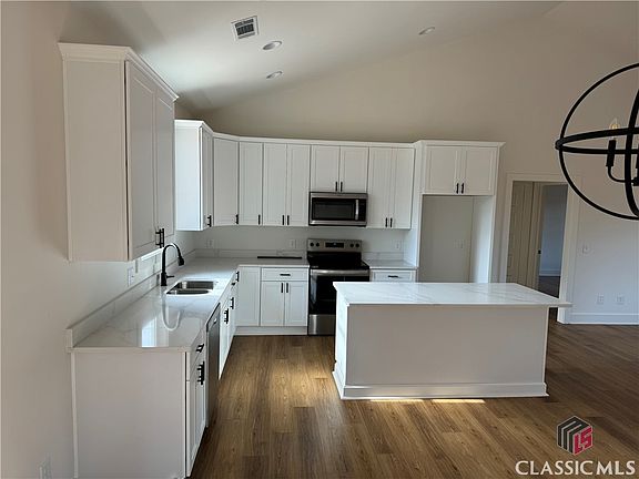 Beautiful 3-bedroom, 2-bathroom home nestled on 2.09 +/- acres. Inside, you'll find a spacious open floor plan with LVP flooring throughout. The kitchen features quartz countertops and stainless steel appliances. The master bedroom includes an en suite bathroom with a tile shower and double vanity, offering both convenience and style. Don't miss the opportunity to make this stunning property your new home sweet home in Carnesville!