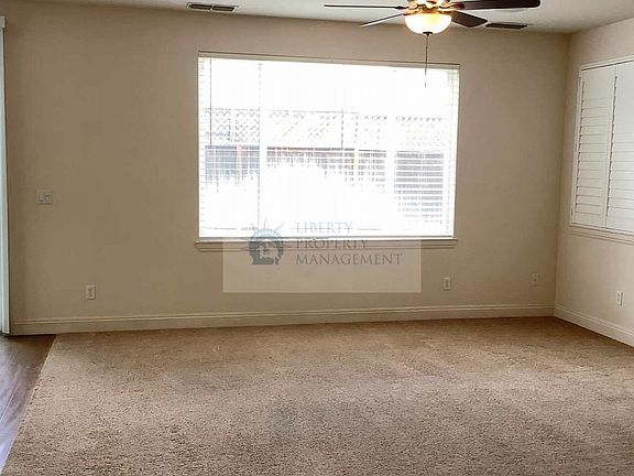 This two story house built in 2006 has approximately 3035 square feet with a family room, living room, loft, den, bedroom downstairs, dining area, carpets, tile & hardwood flooring, blinds & shutters, granite counters, gas range, dishwasher, garbage disposal, microwave, laundry room upstairs, central heat & air, ceiling fans, gas fireplace, front porch, surround sound with speakers, built-in entertainment center, 2-car garage with electric opener, front & backyard with automatic sprinklers, alarm system available at tenant's option & expense only. Take Roselle Ave, turn right on Kodiak Drive, turn left onto Mars Hill St. Close to school, park & shopping. Pets very strictly negotiable. (1 small pet 25lbs. or less, outside only) Residents are responsible for the Resident Benefits Package. This program handles insurance, utility set up, optional credit building and more at a rate of $31.95/month. More details upon submission of application.