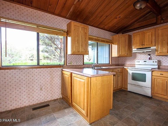 Rare opportunity to own a home in the Ho Kay Gan subdivision of Beautiful Prescott. This lovely home has a large fenced lot, beautiful wood vaulted ceilings and walls, two living rooms both with stone faced fireplaces to enjoy on cool evenings. open floor plan from kitchen to living room. Sip your favorite beverage at the private deck area off the back of this home with trex style floor. There is a large separate workshop area at the back of the garage with storage galore. At the rear of the property is an unfinished structure with added storage that could be finished off and used as a studio, guest quarters or whatever else you would dream. What are you waiting for?