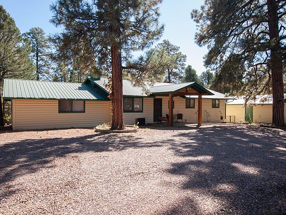 Privacy and tall pines! This ranch style home is situated in a serene setting amongst old growth ponderosas and blue spruce. There is a detached guest house that can be set up as either a 1 or 2 bedroom, with a full bath, kitchenette and wood stove. Private wrap around deck, courtyard, outdoor seating area and a seasonal pond to enjoy the resident elk and deer. Fully fenced and plenty of room for horse facilities or additional shop, etc. All this with no HOA and paved road access.