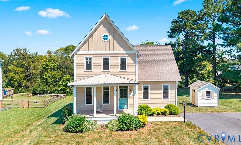 Welcome to Swann’s Inn Estates, a beautiful neighborhood of custom-built homes where convenience meets charm. Just a short walk or bike ride brings you to the YMCA, library, farmers market, café, groceries and Goochland’s new elementary school—while local wineries and the James River are only minutes away. Enjoy lower Goochland County taxes, public water and sewer, and the serenity of gorgeous views and breathtaking sunsets. Built in 2019 and gently lived in, this home has been beautifully maintained. Exterior features include James Hardie siding, a welcoming front porch, back patio, shed, and a paved driveway. Step inside to a bright, open layout with 9-foot ceilings, hardwood floors, five-panel doors, custom Hunter Douglas window shades, tiled baths, pantry, and laundry room. The kitchen shines with quartz countertops, custom cabinetry, tiled backsplash, Maytag French door refrigerator, disposal, and designer lighting. The first-floor primary suite offers a spacious bedroom with wood floors and ceiling fan, an ensuite bath with tiled shower, private water closet, and double vanity, plus a custom-organized walk-in closet. Upstairs you’ll find two additional bedrooms with plush carpet and a full bath. With its peaceful setting, modern comforts, and prime location, this home combines small-town convenience with timeless appeal