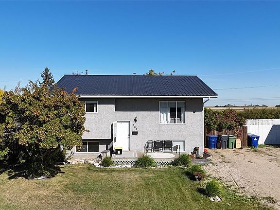 Welcome to 303 4th Street in Dundurn, Saskatchewan. This spacious 984 sq ft bi-level home is located just 30 minutes south of Saskatoon and only five minutes from Blackstrap Provincial Park. Perfect for families, first-time buyers, or anyone looking for more space, this 5-bedroom, 2-bathroom property offers excellent value with room to add instant equity. Set on a 66’ x 126’ lot, the yard features MATURE TREES, STUCCO SIDING, a METAL ROOF on the house (garage has asphalt shingles), and an OVERSIZED 28’ x 24’ fully insulated double detached garage. Inside, the bright, functional layout includes a welcoming living room with large SOUTH FACING windows, a kitchen with concrete countertops, white cabinetry, pantry, and stainless steel appliances. The adjacent dining nook opens to the back deck, creating an easy indoor-outdoor flow. Durable laminate flooring is found throughout the home for a clean, modern look. The main floor offers three bedrooms and a full 4-piece bathroom. The fully finished basement adds two more spacious bedrooms, a family room, a 3-piece bathroom, extra storage and laundry/utility space. Recent updates include a washer/dryer, laminate flooring, trim, bathroom fixtures, and the home is equipped with forced-air natural gas heating, an owned furnace, and a gas water heater. Appliances are included, making this home move-in ready. This Dundurn real estate listing backs onto open fields for peaceful prairie views while keeping you close to Saskatoon and Blackstrap Provincial Park. A rare opportunity to enjoy small-town living with modern convenience!