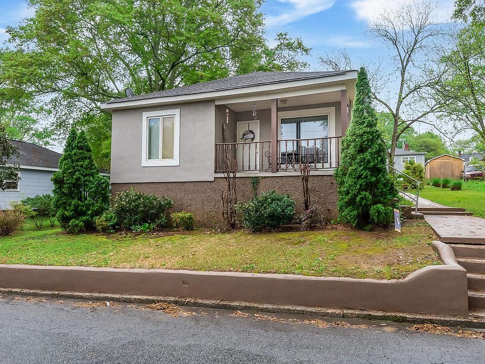 Just listed, 303 Blair St is an adorable 3 bed 1 full bath home just a short walk from Easly's Doodle trail park ( a 7.5 mile trail between Easley and Pickens). This sleek looking home is surrounded by mature trees and bushes making it a nature lovers dream. The covered front porch is perfect for relaxing after a long day. Inside fresh paint, newer carpet, updated fixtures and crown molding await you in the family room. The Master bedroom is spacious offering carpet, large closet, ceiling fan and more crown molding. The recently renovated kitchen offers beautiful laminate flooring matching the wooden cabinets and shelves, stainless steal appliances, and elegant granite countertops. Bedroom 2 is just off the kitchen with carpet, ceiling fan, large closet and more crown molding. Bedroom 3 has that lovely laminate flooring matching the kitchen, ceiling fa and large windows overlooking the lush green back yard.The full bathroom is at the rear of the home and offers a tub shower combo with glass door. The back patio is perfect for grilling and chilling with friends. Parking is located at the rear of the home via an alley. Be sure to schedule a private tour today before this one is gone!