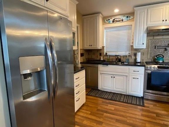 Shows like a model! 3 bedroom, 2 bath with gourmet kitchen! This stunning top of the line Hallmark home shows like a model! Offering 3 spacious bedrooms and 2 full baths and just blocks from the beach and pier! The chef in the family will love the gourmet kitchen featuring crisp white cabinetry with granite countertops, gas cooking, pot-filler faucet over stove, and stainless steel appliances including french door fridge! Relax in your spa-like master bath with stone tile flooring and soaking tub! Get cozy with a book in front of your beautiful gas fireplace. Super private yard including a giant workshop. Wonderful family neighborhood - and WOW - lowest space rent around. About a half a mile from the ocean! Hurry will not last! Serial#18209A, 18209B