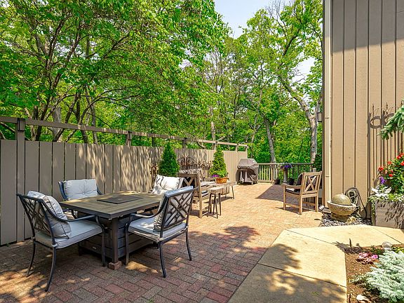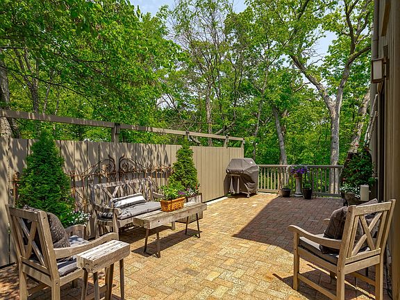 MULTIPLE OFFERS RECEIVED. Come see this unparalleled Lake Barrington Shores END-UNIT, FULLY UPDATED townhome -- MAIN FLOOR BEDROOM w/ENSUITE BATH, FULL, FINISHED, WALKOUT BASEMENT, ATTACHED 2-CAR GARAGE and 3 PRIVATE, OUTDOOR SANCTUARIES! This distinguished home is nestled amid lush greenery and artfully landscaped grounds. Nothing else quite like it here. Nearly 3100 sq. ft. has been exquisitely remodeled throughout w/new windows and sliders plus added skylight in stairwell, custom, slate fireplace, stainless appliances, new mechanicals including heat pump and A/C, water softener and water heater, two electric fireplaces, double-sink, quartz-top vanities, recessed lighting, radiant heat flooring in guest bathroom, plus new railings and baluster iron work! Classic, elegant interior spaces seamlessly integrate w/equally beautiful outdoor spaces. Walking through your private patio entrance unveils an arboretum created by master gardening skills. This oasis is extra wide by 3 1/2 feet, and what a difference it makes -- nicely flows into cook's kitchen, w/granite counters loads of cabinetry and bar area for instant alfresco dining and outdoor entertaining. Kitchen also opens to balcony on the bluff overlooking gorgeous greenery. Finished lower level, w/fireplace and very open family room w/cute wine cabinet and handy beverage bar, leads to a patio sitting on the edge of a wooded backdrop of serenity. Second floor greets you with an open office/loft w/built-in bookcases that overlooks the main level. The addition of a skylight here enhances the space w/amazing natural light. Adjacent is another bedroom w/ensuite bath and walk-in closet (take your pick for the primary!). Easily convert what's currently being used as a storage room on the lower level to a 3RD BEDROOM (23x14), which is right around the corner from a full bath. Large laundry room has folding table area and even more storage. Attached garage provides ample room for vehicles and outdoor gear. With its stunning spaces and light-filled ambiance, this very special home, tucked away and across from the 12th hole, is a masterpiece of style and substance.