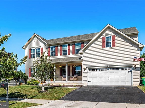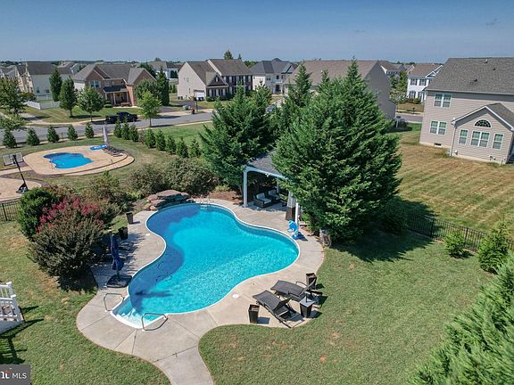 Beautiful 6 bedroom, 3 1/2 bathroom colonial offering a covered front porch, 2 car garage, partially finished basement and a backyard paradise. The main floor offers a guest/in-law suite with full bathroom, formal living room/office, dining room, family room with gas fireplace featuring exquisite word working including ship lap and coffered ceiling, Kitchen with center island, granite counter tops, stainless steel appliances, and a pantry, as well as a morning room with access to the backyard deck. The upper level offers 5 bedrooms and features a owner suite, a large bedroom over the garage, laundry and 3 other generously sized bedrooms. The basement has a finished room, bathroom and offers a double well walk up exit to the backyard. The fenced backyard features an in ground swimming pool with remote controlled underwater lighting, 3 deck jets, pennsylvania jump boulders/waterfall, deck, patio and a lounge area covered by a pergola with privacy trees. The home also features hardwood flooring, central vacuum system, bonus dedicated mini splits in most upper bedrooms, and plenty of storage space in the garage. Community amenities include walking trails, gazebo, park with playground, sand volley ball court, basketball court and wall ball. There is also a 18 hole golf course with clubhouse, Lore Woodfyre and Highlands Whiskey Bar. Don't miss the opportunity to make this impressive property your new home!