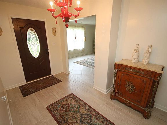 This comfortable home is quaintly situated at the end of a quiet street & backs up to a peaceful view of mature trees & a gorgeous natural buffer. Step in & be surprised by the huge 13 x 15.6 BONUS ROOM w/ CROWN MOLDING which would be perfect as an ADDITIONAL DEN for entertaining. As you step into the family room you will love the large WOOD BURNING FIREPLACE w/ RUSTIC WOOD MANTLE perfectly situated in the middle of the room which can be enjoyed from the kitchen as well. The STUNNING 18" EARTHTONE CERAMIC TILE IS ON A DIAGONAL which adds interest. The Accent lighting above the fireplace lends a nice appeal. Adjoining the family room is a nice size dining area where the 18" continues. The kitchen boasts a beautiful GRANITE look Formica that compliments the dark cabinets. The 4-burner stove also enjoys a 5th warming eye, WOOD LOOKING HAND SCRAPED TILE, tall cabinets w/ CROWN MOLDING, DOUBLE STAINLESS-STEEL sink & the window seals in the eat in kitchen are marble. The laundry room is quiet large & boasts a MUD SINK, RUN OF CABINETS, TILE, LARGE CLOSET W/ BI FOLD DOORS & a ½ BATHROOM which is tiled & enjoys a functioning window. The additional bedrooms have 18" diagonal tile & one features charming sconce lighting. A full bath in the hallway has a tub shower combination w/ commode & features a vanity with CUSTOM FRAMED MIRROR, stylish dark light fixture & a LINEN CLOSET. The master bedroom is a nice size and enjoys 18" diagonal tile, a master bathroom suite w/ a window, vented walk in closet, framed mirror, stylish light, tile & cultured marble countertop. Step back out to the Family room which will lead you to the FLORIDA ROOM that is stunning w/ all the windows that will leave you breathless w/ its peaceful view of the natural setting of the back yard. Nice lighted ceiling fan will keep you cool. The storage is quite nice as you have a storage closet in the foyer & 3 additional large closets in the hallway. Surround sound speakers in many rooms.