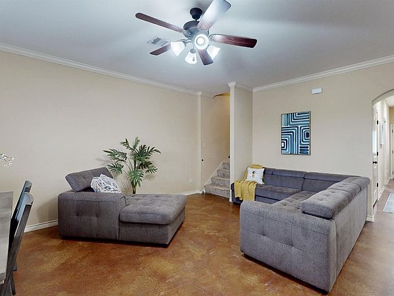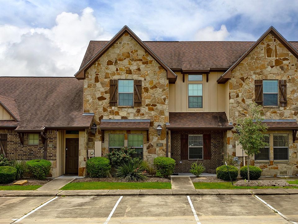 Available for immediate move-in! Located just minutes from TAMU campus, this 4B/4BA 2 story townhome features a stone exterior, high ceilings, granite countertops, low-maintenance, stained concrete floors with carpeted bedrooms. The huge, open kitchen with eat-up bar is large enough to accommodate a housefull and is loaded with cabinets for ample storage. 2 large bedrooms down and 2 additional up, each with full bath attached and walk-in closets.