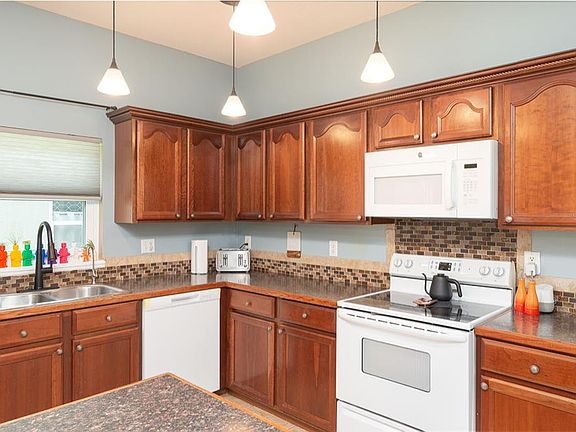 Impressive meticulous landscapingBeautiful cherry wood cabinetry