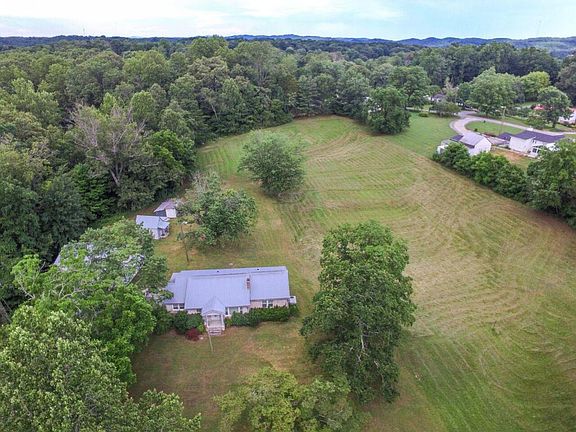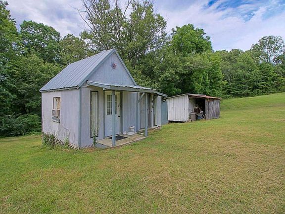 All brick home with super large living/dining room with hardwood floors and wood burning fireplace. Master has hardwood floors and bath. Bedroom #1 and #2 have hardwood also. Laundry/mud room located off kitchen. Home has metal roof, updated vinyl windows and very nice ceiling fans. Detached garage is ample for a couple vehicles and a good size workshop.Cute little house that would make play house for kids/art studio. All this is situated on 4 beautiful rolling acres.