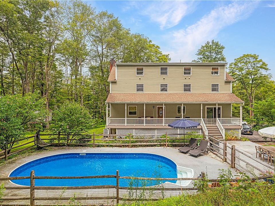 Welcome to your private sanctuary! Tucked away on 2 wooded acres sits a large colonial with farmhouse charm. The heart of this 4 bed, 3.5 bath home is a large living space with hardwood floors and farmhouse beams, all anchored around a fireplace that fills the home with a warm and cozy feeling. The large eat-in kitchen features a cute windowed dining space, stainless steel appliances, two ovens, breakfast bar, and sliding glass doors that lead you to the back porch and outdoor entertainment area. A formal dining room, perfect for holidays and gatherings, sits adjacent to the kitchen. A half bath and center hall lead you to the second floor. Upstairs, the king-size primary has ample closet space and an updated en suite. Down the hall, there are three additional queen-size bedrooms, two generous bathrooms, and a laundry room/linen closet. The third floor is an added surprise, completely redesigned to be a bright, cheerful space with an impressive home office. This 1,008 sq ft flex space offers a plethora of opportunities such as a home gym, media room, and/or play space. On the lowest level, there is a partially finished basement and access to the attached two-car garage. This property really shines in its outdoor areas, all adding to those upstate oasis vibes! Just steps from the kitchen, a large patio with space for dining sits alongside an in-ground pool surrounded by perennial flowering gardens. As you walk the grounds, you’ll find mature trees, one with a treehouse and a beautiful side yard with raised garden beds. This home is 10 mins to Millbrook which is full of antiquing, restaurants, shops, vineyards and galleries, 7 mins to Pleasant Valley for essentials, and 25 mins to Stissing House (ranked fifth on NYT’s Best Restaurants in America 2023) as well as the Poughkeepsie and Wassaic train stations. It’s just 90 mins from NYC by car with a nearby entrance to the Taconic State Parkway. Additional Information: Amenities:Storage,HeatingFuel:Oil Above Ground,ParkingFeatures:2 Car Attached,