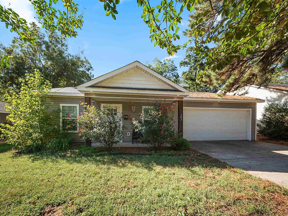 Adorable 4 bedroom, 2 bath home with an open floor plan - perfect for everyday living and for entertaining! Some key features of this home include a cozy gas log fireplace, a gas range, and a kitchen island for extra workspace and storage. Durable LVT flooring flows through the main living areas, with carpet in the bedrooms. The spacious primary suite offers a walk-in closet, double vanities, and walk-in shower. Enjoy the nicely sized, fully fenced backyard and covered back patio—perfect for relaxing or entertaining.