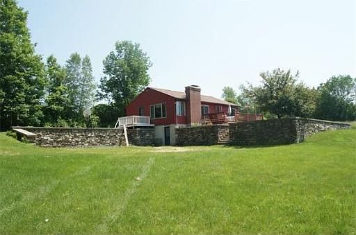 HURRY*** 10+ PRIVATE ACRES!! YOUNG RANCH w/3BR SEPTIC SYSTEM is currently set up as 2BR. Cathedral Ceiling LR w/Masonry FP & Bluestone Hearth & Mantle opens to Kitchen. Bright DR w/parquet floor leads to extra large Deck overlooking the peaceful acres. Anderson Windows. 6-Panel SOLID WOOD doors. Recessed Lights. Lg Walkout Bsmt w/sheetrocked walls. Steel I-BEAM. Gorgeous stone walls. Lots of possibilites! Nice place for a horse. Seller prefers NO drive-bys (Private Driveway) PLS call for appt.